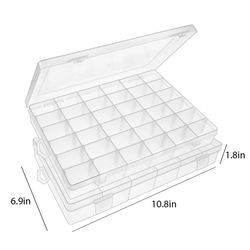 Crafted from plastic, this 36 grid transparent storage box offers a clear view of contents for quick selection and organization. Each grid keeps items separated, preventing clutter and loss. The removable lid fits securely, protecting contents from dust and spills while allowing easy access. Ideal for desktop storage of beads, screws, jewelry, or small accessories, it combines practicality with a neat and safe design for everyday use.