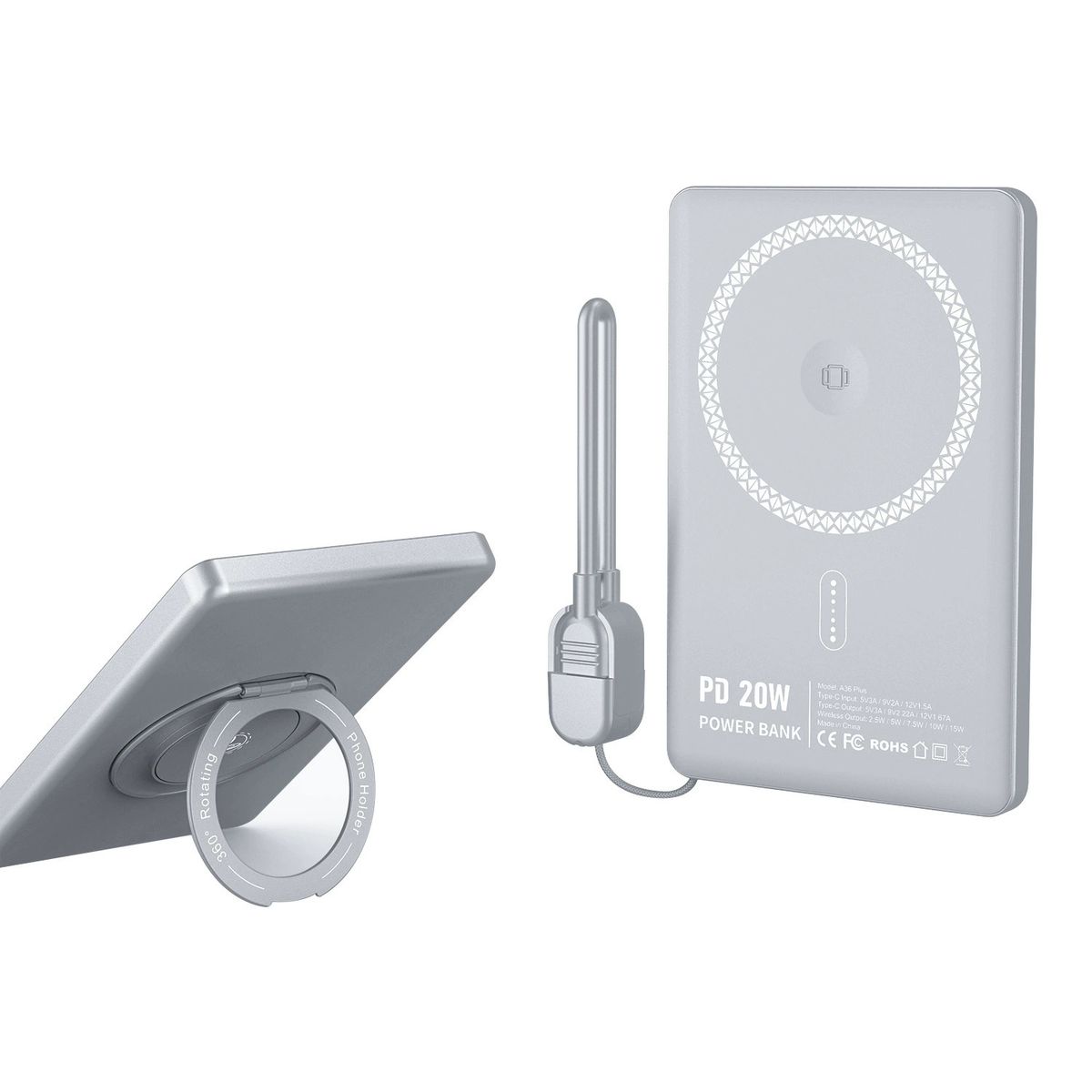 We integrate a magnetic stand and phone grip into one small portable charger. Free your hands while watching reels, shorts, Facetime. Also worked as a ring holder, provide you a safe and sound non-slip grip. Come with dual purpose bidirectional fast charging cable, can be used as a hanging rope when retracted, it is easy for carry. This battery pack charger portable offers a safety system with temperature control, overcharge protection, and short circuit protection, ensuring a safer charging experience